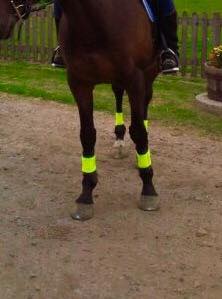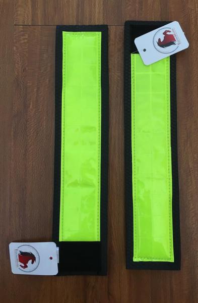 Bandas Fluorescentes Verde Neón con velcro , importadas ! Muy recomendables por su visibilidad en horas muy tempranas o de noche , aumentando la Seguridad para circular con su caballo en Ruta , Ciudad para ser visto fácilmente o usarlas como identificación !!!! Excelente calidad !!! Se venden por par (2 unidades) medidas largo 30cm y ancho 6,5 cm.